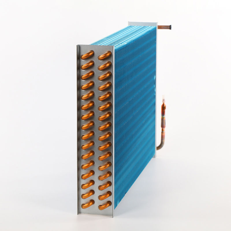 φ9.52mm أنبوب نحاس سلس، سمك 0.3mm؛ زعنفة ألومنيوم زرقاء، زعنفة 1.8mm، زعنفة سمك 0.115mm
